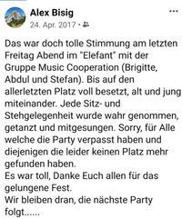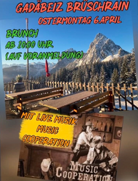 MUSIC COOPERATION ist ein Duo bestehend aus Stevi (Gitarre, Gesang, Mundharmonika und Perkussion) und Pretty Brigitta (Gesang). Die "kleine Band" existiert seit 2009 (vorher MC GOOD FRIDAY). Sie werden für eine gute Stimmung in einer freundschaftlichen Atmosphäre sorgen. Rock’n Roll, Blues, Country von den 50er bis 80er Jahren. Cover Music und Songs zum Mitsingen. Gastmusiker: Pascal (E-Gitarre), Vladan (E-Gitarre), Speedy (Mandoline und Bass). Beat (Harmonika, Gitarre, Keyboard ...)